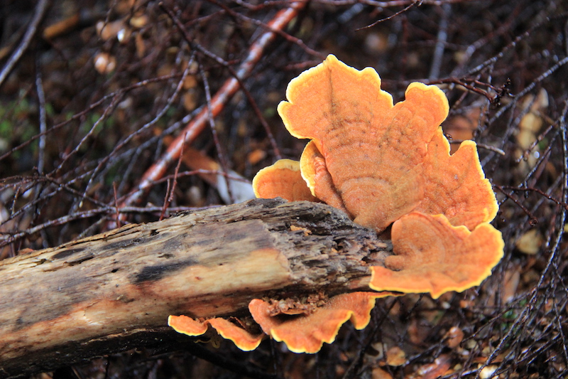 Golden curtain crust (Stereum ostrea).