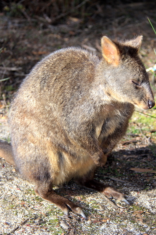A sleepy Tasmanian pademelon. The rufous-bellied pademelon is the sole species found in Tasmania.