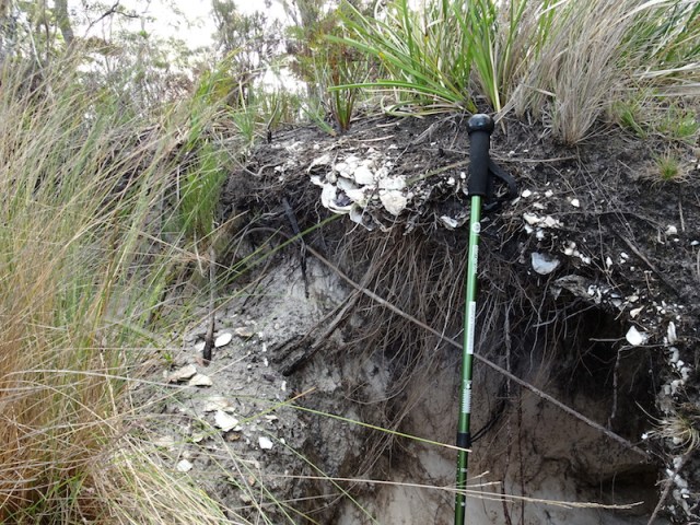 At the southern end of the beach where we camped there are a number of Aboriginal middens containing mostly oyster shells. Nearby the middens there are growing oysters awaiting harvest, the size of a fist. It must be said though that one has to be careful eating wild oysters in Tasmania as they can be contaminated with bio-toxins, which is related to algal bloom levels in the water. Commercial oysters are not immune to being affected but the ones for sale have been tested for contamination and are therefore safe to eat.