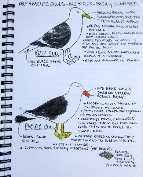 Sketches of Pacific and kelp gulls.