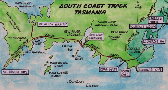 To actually visit the most southern tip of Australia (Southeast Cape) it requires stamina, determination and a good sense of direction as there is no track and a fair amount of bush bashing is required. Southeast Cape is 3680 kilometres (as the crow flies) from the most northern tip of Australia’s Cape York.