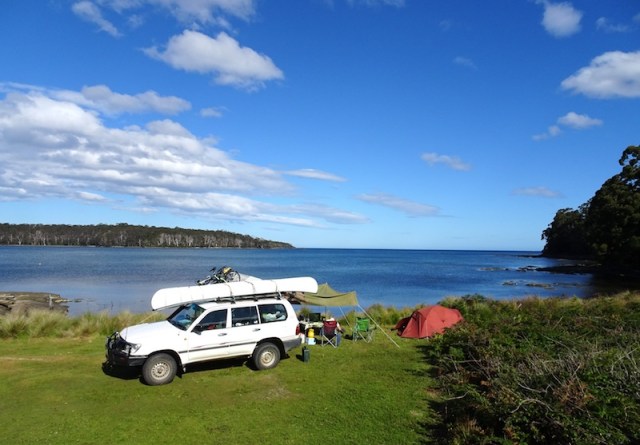 Finding a suitable campsite in Recherche Bay is not easy. Locals set up camps and leave their caravans in situ all year round, even if they are not in attendance, and it’s because of this action it is hard for the casual visitor to find a spot. However after enquiring where we might camp we were directed to a nine out of ten idyllic spot.