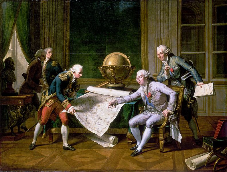 A painting by French painter Nicolas-Andre Monsiau (1754-1837) showing Louis XVI giving La Perouse his instructions for his forthcoming voyage to the far south lands. Image credit: Free of copyright and drawn from Wikipedia.