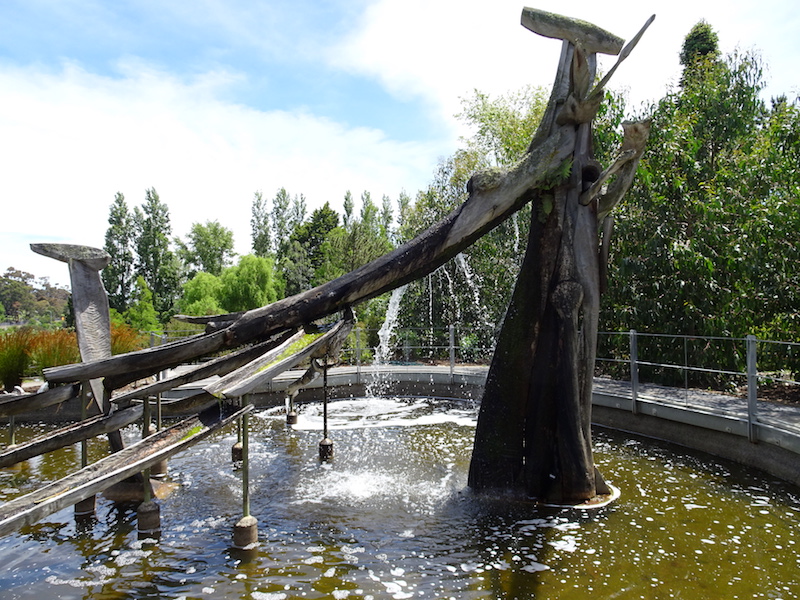 The French Memorial Fountain in the Royal Hobart Botanical Gardens. The sculpture represents the bow and sails of an early French sailing ship.