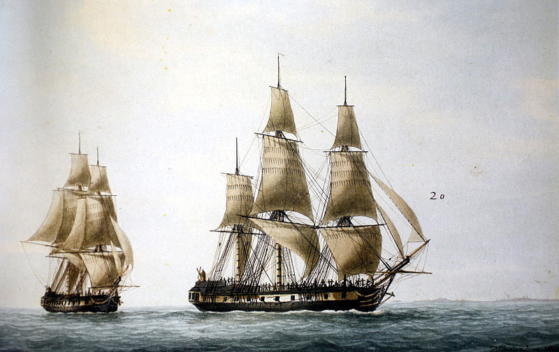 D’Entrecasteaux’s ships, Recherche and Espérance by artist François Roux.