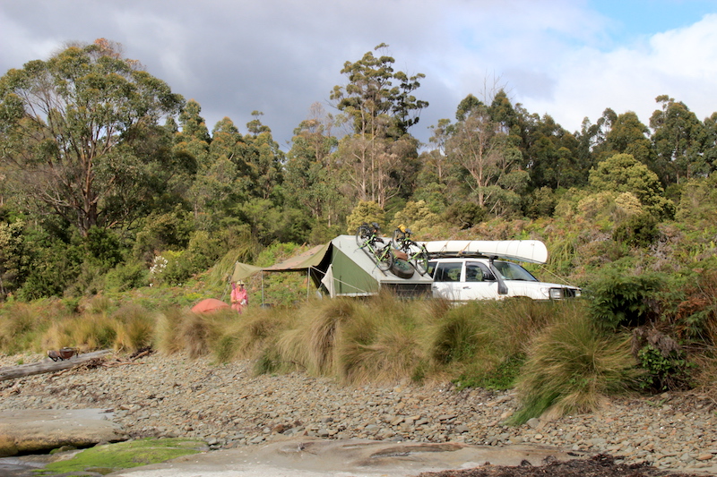Finding a suitable campsite in Recherche Bay is not easy. Locals set up camps and leave their caravans in situ all year round, even if they are not in attendance, and it’s because of this action it is hard for the casual visitor to find a spot. However after enquiring where we might camp we were directed to a nine out of ten idyllic spot.