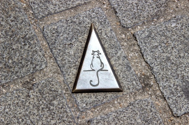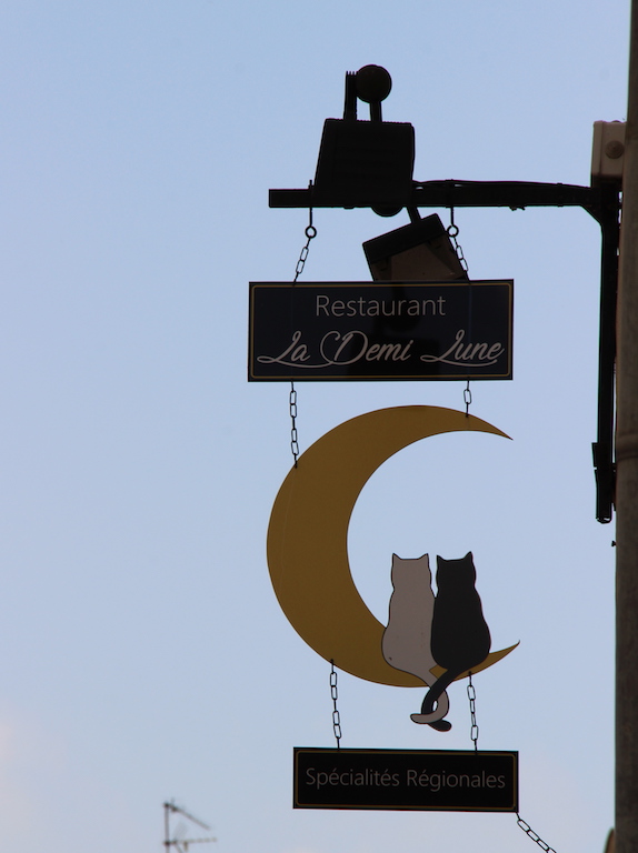 A Perched Cat plaque showing us the way. The term ‘perched’ comes from the fact that Dole is a perched town e.g. situated on top of a hill.