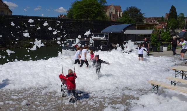 Fun for young and old at the end of a fun run. The mousse machine provided lots of laughs, some cooling off and numerous photographic opportunities.