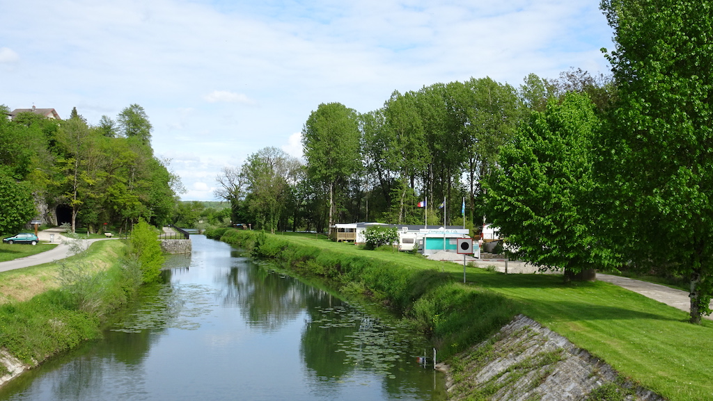 Ranchot camping area (right) is open all year. Eurovelo 6 on left.