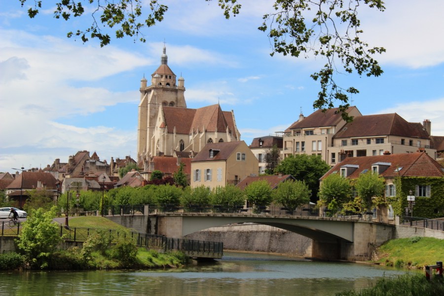First sighting of Dole and the 500-year-old bell tower of the Collegiale Notre-Dame.