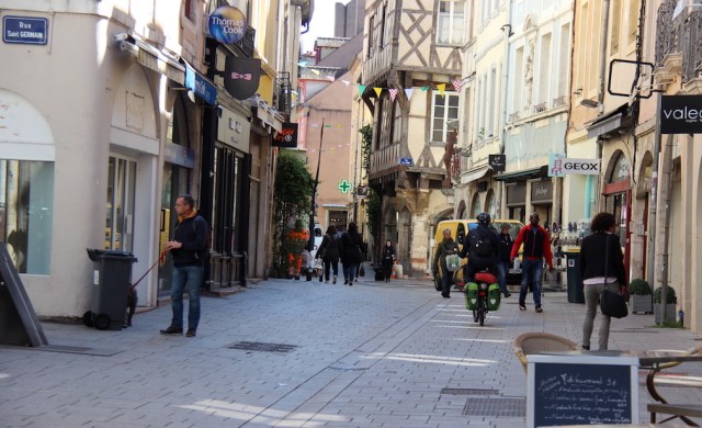 The town of Tournus is reported to be a historical town of some note so we decided to stay two nights. Our lunch spot today was by design, out of the wind and in the sun next to a window. It was one of those moments of personal delights.