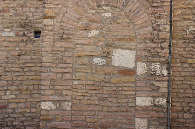 Sometimes large blank stonewalls are enlivened with blank doorways and windows but I do not think this is the case here: the telltale sign is the irregular stone and the large square stone set part way up the doorway.