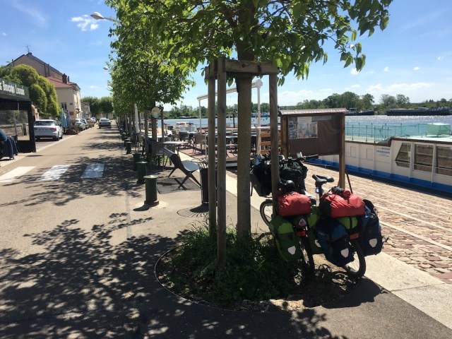 From Seurre to Chalone-sur-Saone we pedalled 58 kilometres from where we were turning south to Lyon. There were a few ups and downs, mostly through open farmlands and cereal crops.