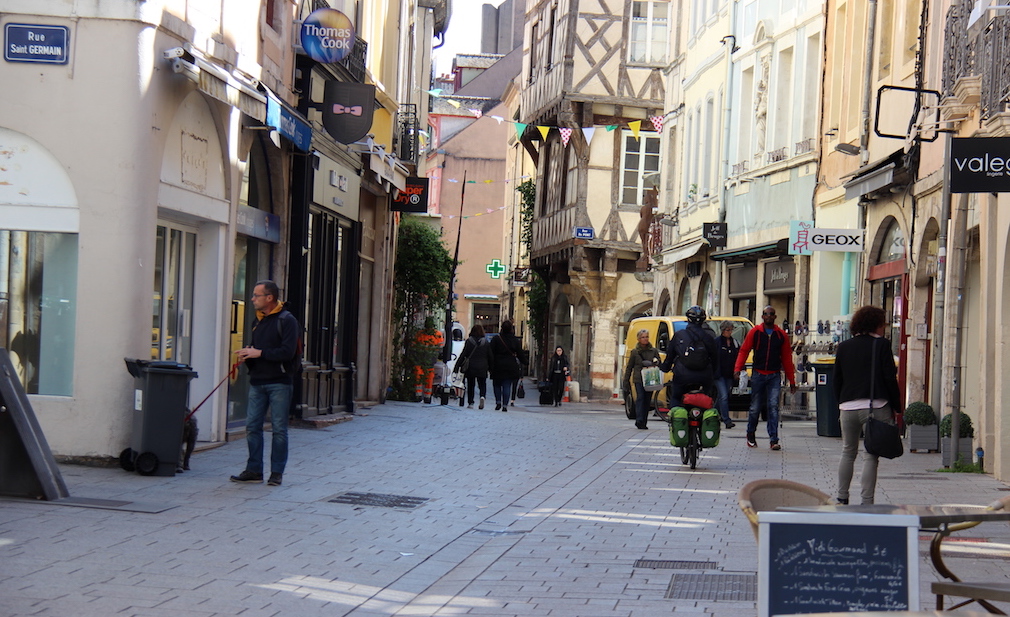 Bev poking her way through the streets of old Chalon-sur-Saone.
