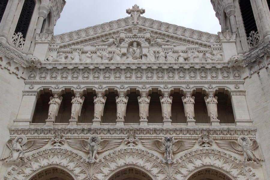 Eight caryatids in a row along the front of the basilica.