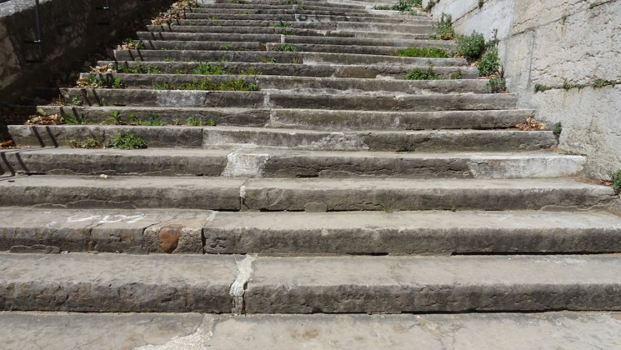 Steps along the riverside in Lyon, a cyclist’s nightmare.