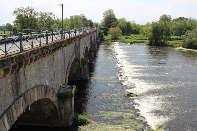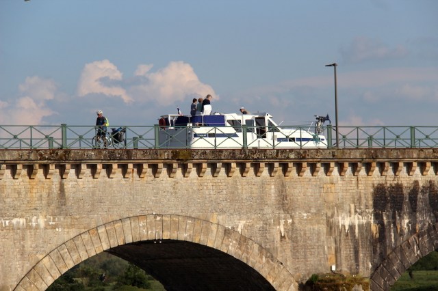 Having spent time in the sun and being enthralled by the sculptures of the church we decided to stay in Digoin, we stayed at Hotel Lily overlooking the River Loire. Our walk in the late afternoon took us to the canal aqueduct. Canal builders in France are to be commended for their engineering skills. No challenge, such as taking a canal across a river, through a mountain or across a valley, was too great. Go to Archives December 2015 to read about their canal building expertise.