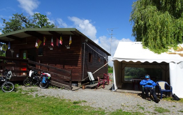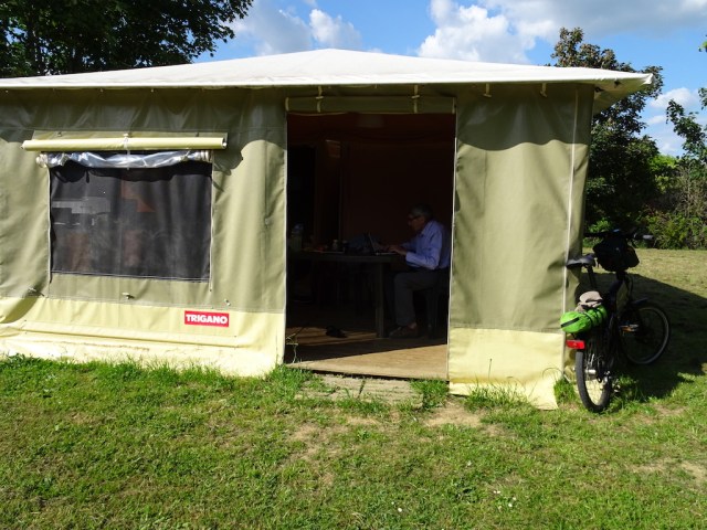 Paray-le-Monial camping area, Camping Le Mambre, was one of the few camping areas that provided a shelter for campers and in this case it was an umbrella.