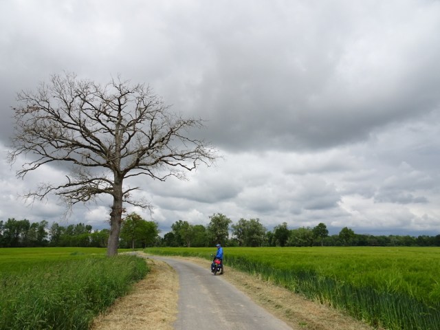 On this journey we paid more attention to the weather than we have previously as two years ago when riding the Eurovelo 6 we rode in the rain and if it could be avoided this trip we attempted to do so. However rain cannot be avoided and in light of me forgetting my waterproof pants in Lyon we decided we should buy another pair. Stefan, the custodian of the camping area, told us where to find a sports shop. I thought the town centre where the ancient church was located was the extent of the village but there was a huge commercial centre on top of a hill where there was a sports store.