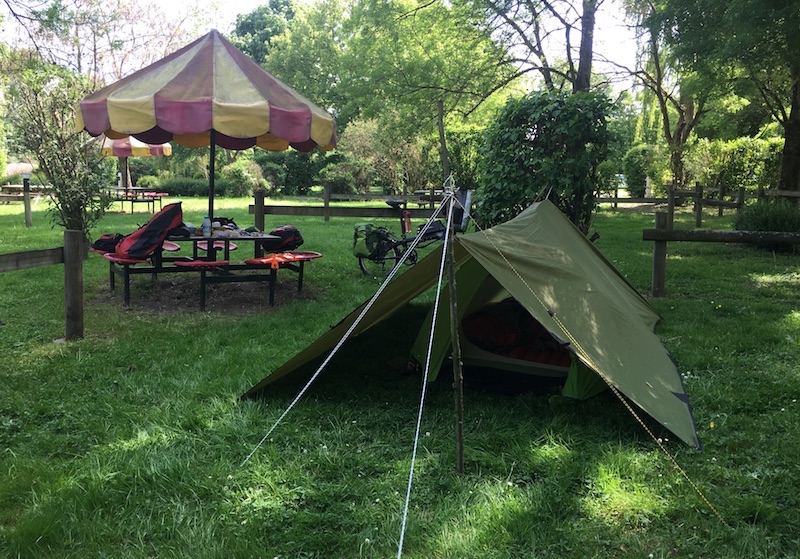 Paray-le-Monial camping area, Camping Le Mambre, was one of the few camping areas that provided a shelter for campers and in this case it was an umbrella.