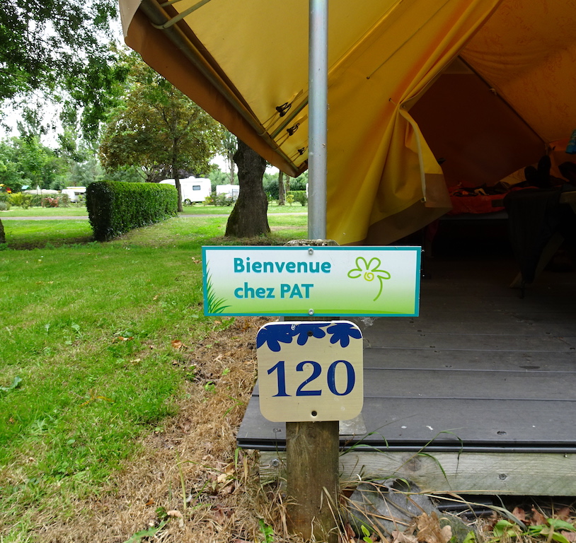 Site No 120 at Brain-sur-l’Authion Camping. ‘Bienvenue chez Pat’..welcome to the house of Pat.