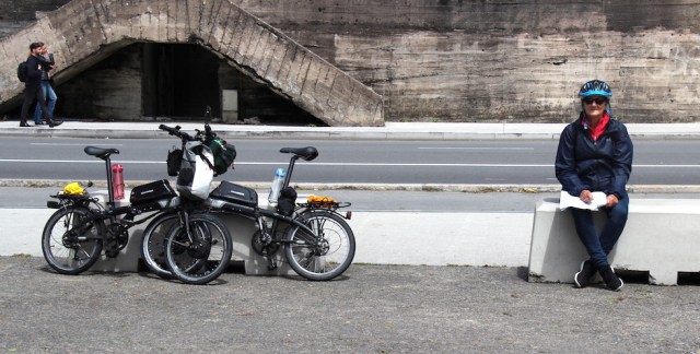 Note the blue sky in the last few images. Most of the ride to Nantes was in sunny weather but about 20kms from the city a storm rolled in from the North Sea. We donned our wet weather gear, waited out the heavy wind and rain then pressed on to a stormy Nantes. Fortunately for us we met with a local cyclist riding to Nantes and we followed her in driving rain into the town centre where our hotel was located. Soaking wet and utterly bedraggled the hotel receptionist described us as looking like a couple of ‘drowned rats’.