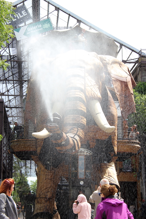 A blast of water from the trunk warns people who are too close to move out of the way.