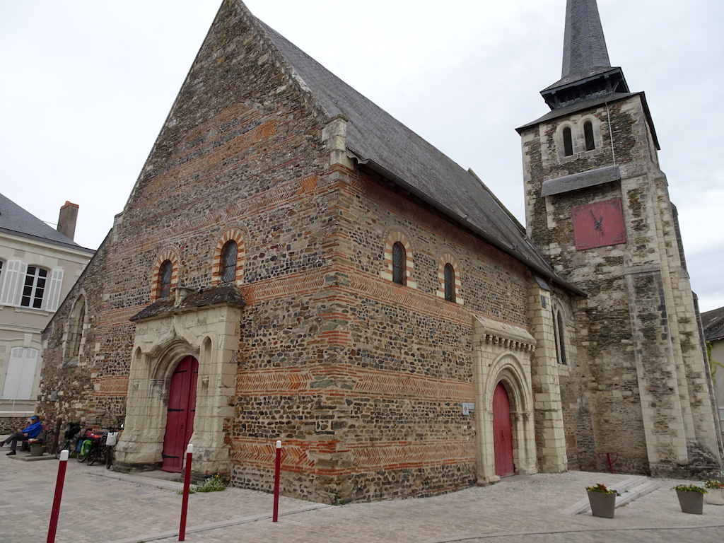 A great spot for lunch outside the church of St Peter and St Roman Savennieres, surrounded by a conglomeration of stone and brick.