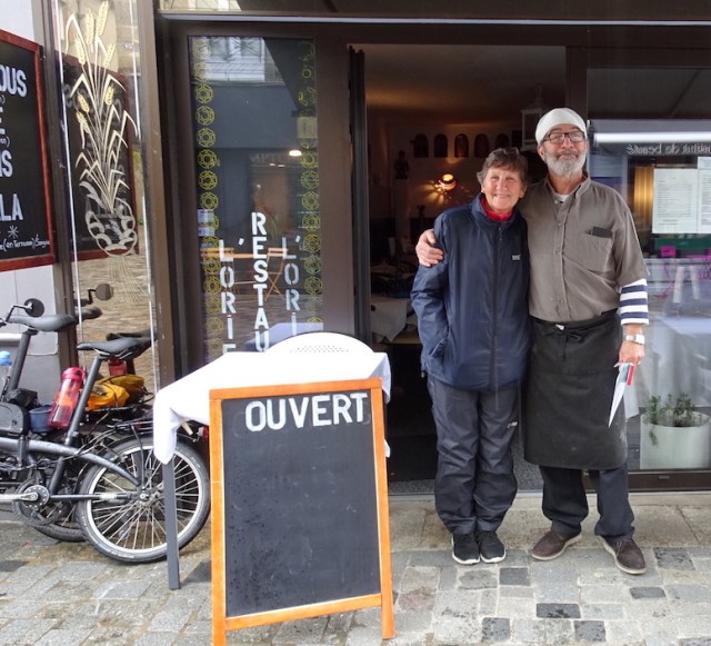 The Nantes-Brest Canal was very picturesque although there were few small towns along the way to draw us in. However, we did stop for lunch at Guenrouet at a café overlooking the canal. While we lunched there was a storm and that was to herald our afternoon’s wet ride.