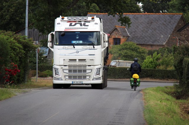 Before setting off for La Gacilly it was necessary to find a laundromat. And with clean and dry clothing we found ourselves on quite a busy road. It was a little hairy sharing it with large trucks but with our power-assisted bikes it was easy to keep up our speed and get that section completed in relatively quick time.