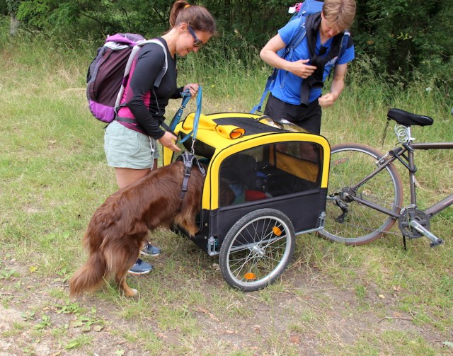 Sometimes the dog ran alongside but its paws would become aggravated so into the trailer it went.