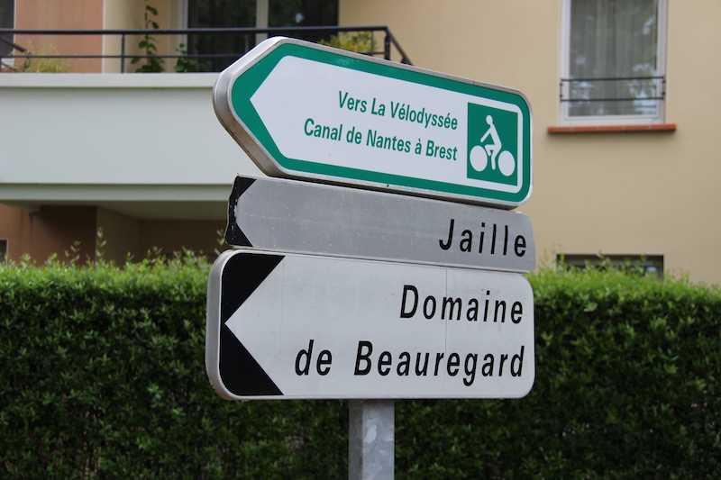 Signpost to Nantes-Brest Canal and La Velodyssee, the Eurovelo 1.