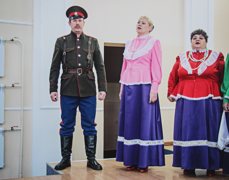 Cossack choir performing at House of Friendship which serves various ethnic groups united under the People Assembly umbrella. Petropavl, Kazakhstan, 2017.
