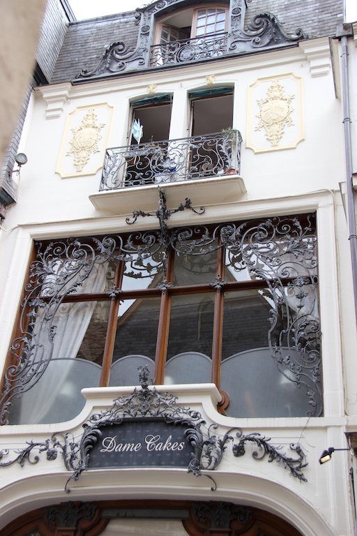 The decorative façade of the Dame Cakes tearoom.