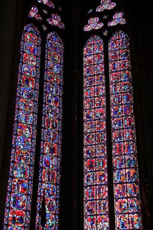 On the walls of the cathedral are some equally exquisite pieces of artwork, namely the decorative stained-glass windows. Many of these are considered to be some of the finest in France.