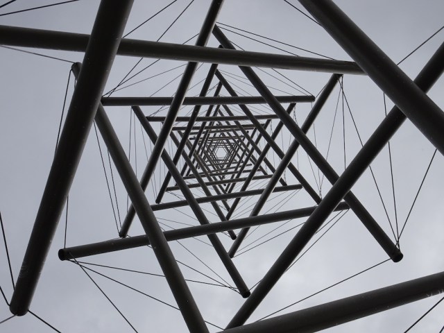 The wire rope steel tube tower looks unimpressive from a distance. But if you proceed to the centre of the tower and look skywards, what do you see?