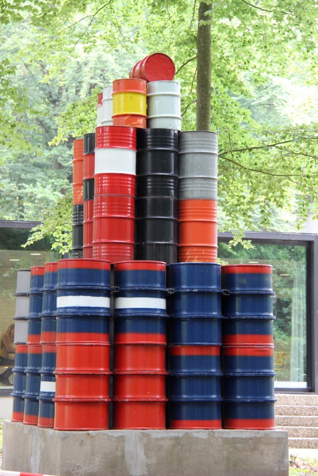 In the garden were two sculptures using objects that had relevance to Australia, 44-gallon drums and a corrugated iron water tank.