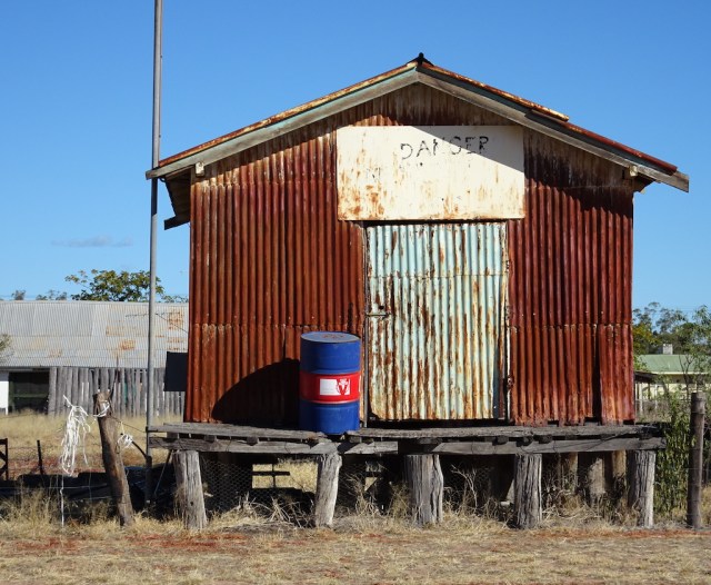 Another Australian national treasure… a farm shed built from corrugated iron and flattened 44 gallon drums.