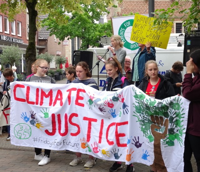 Borken is a regional town (pop. 41000) 10 kilometres east of the Dutch border in the North Rhine-Westphalia state of Germany. In the town centre I joined in a students’ Climate Justice rally while Bev was at the dentist. It was an enlightening encounter, being with passionate young people who were determined to bring the effects of climate change to the attention of politicians and the masses generally.
