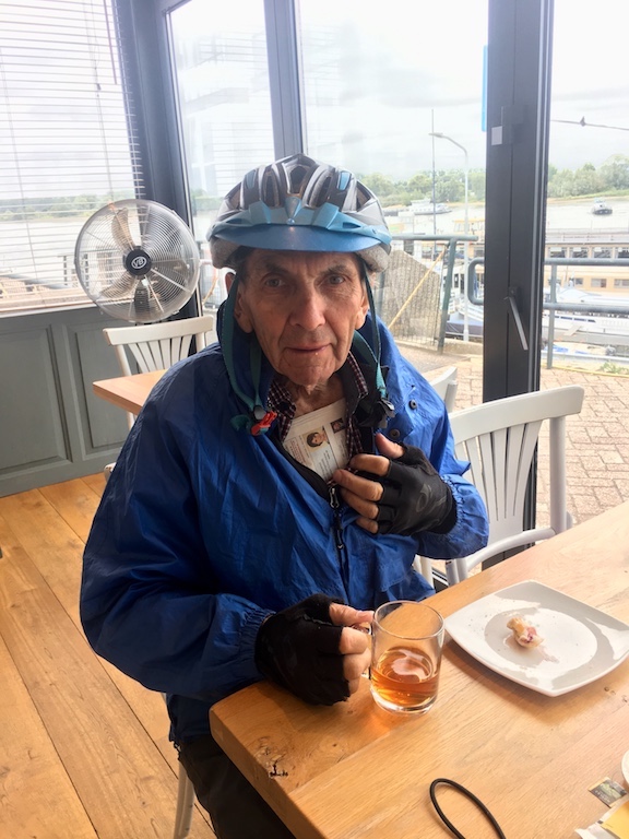 On this diversion to Holland I decided to take sandals rather than shoes, and not carry a fleece jumper. My thinking was we were heading into summer and it would surely be warmer. This was a bad move as it turned out to be freezing and I had to resort to stuffing a newspaper down my front to protect against the cold wind and having no shoes meant wearing socks and sandals. My grandfather told me if you are cold when riding a bike to stuff newspaper under your shirt. He was qualified to give such advice as he was instrumental in setting up the first military bicycle battalion in England just prior to WW1.