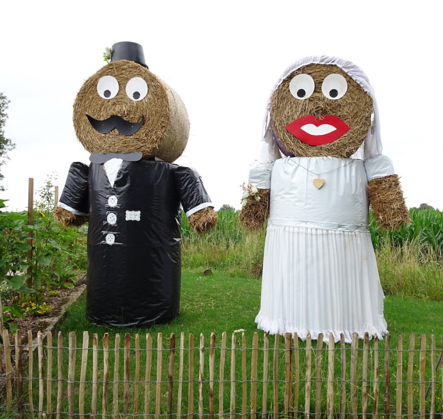 Many farmers entertain the passers-by with amusing hay bale constructions.