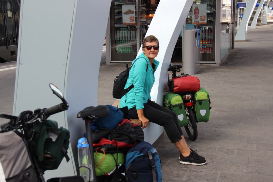 Waiting for the train to Den Bosch. The Arnhem station platforms have the same ‘twist and trumpet’ attributes (no straight vertical columns) as the station concourse.