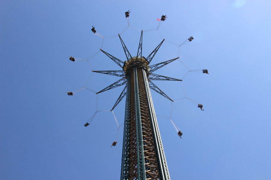 The 117 metre high Prater Trum chain carousel. There are people up there!