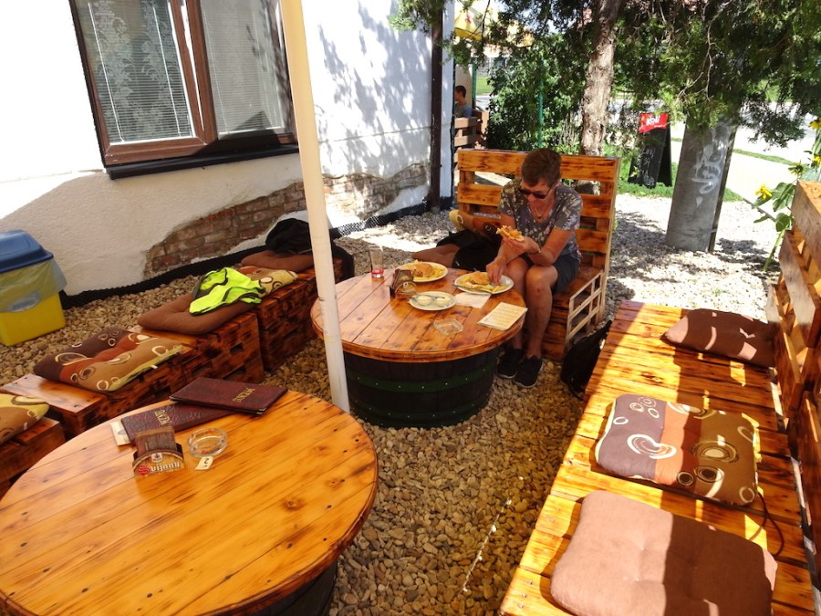 An excellent use for recycling pallets at the café at Brod nad Dygi.