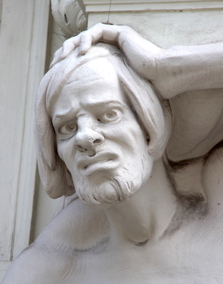 To date, I have never found a telemon with a smile, probably because they are supporting a heavy load and thus the strain shows on their faces. Columns in the form of a female are called caryatids.