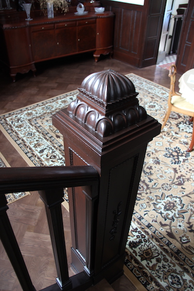 Carpenters took great pride in the making of wooden staircases and the making of an impressive newel post was the pinnacle of their trade. There is an English custom when it comes to newel posts. If you owned your house it was customary to insert a small piece of ivory in the top of the post, it indicated you owned the house. I suppose it was a way of saying, ‘Look how rich I am, I own my house’. Or, instead of inserting a piece of ivory in the newel post, a hole was drilled in the post and the rolled up deed document was put in the hole and capped with a decorative plug.