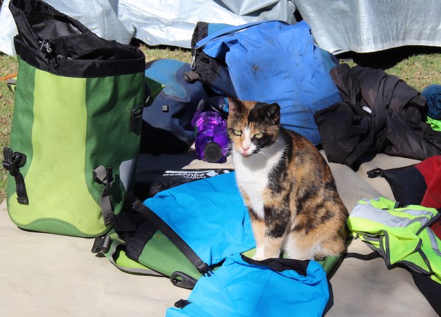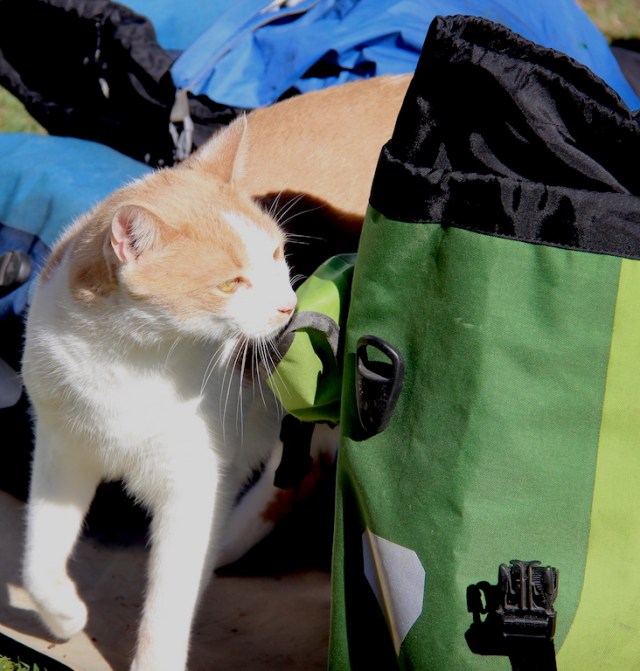 When we first arrived their cats came and checked us out. One cat, Poh, jumped up on the trailer and sniffed every square centimetre of our bikes and gear and when we unloaded our gear Sazzles swung into action.