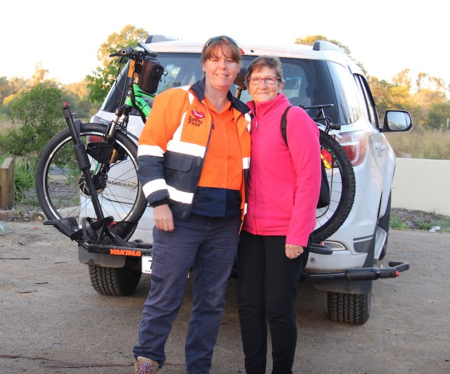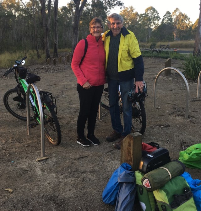 Our next thought was to drive north to Fernvale, another town along the BVRT. The car park adjacent to the tourist information centre has security cameras and people leave cars there overnight but I wasn’t too keen on that course of action for a possible five nights. It was getting late and we were getting desperate for a place to camp and leave our car. Then a bolt of hope came out of the blue. Bev had placed a request on the BVRT Facebook page asking for a place to leave the car. The next thing we knew we were taking up residence in the spare room of Debbie and her husband Wayne’s house. What a windfall it was for us, one minute with nowhere to leave our car, let alone somewhere to sleep the night, and now in comfort and with like-minded company. Debbie and Wayne are great advocates of friendship and the four nights we had with them were pleasurable (two nights before the ride and two nights at the end).