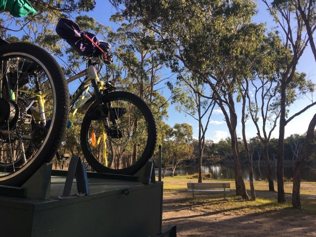 Our bikes and gear at Yarraman, the start of the trail going south.