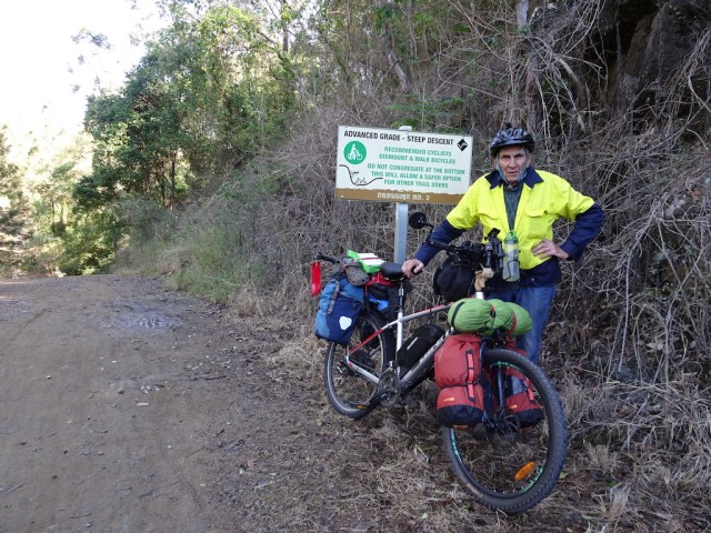 The warning sign at creek crossings indicates cyclists should not stop and have a chat at the creek bottom as some riders zoom down and out without dismounting. The speed hogs carry no equipment and many I am sure are on speed runs in an attempt to set records.